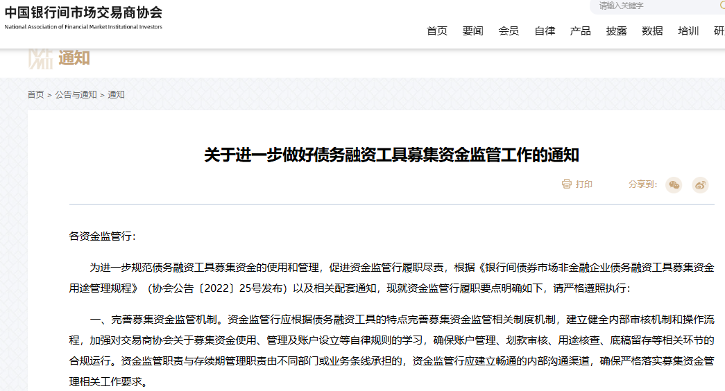 【公共网财经轮廓报谈】为进一步步调债务融资器用召募资金的使用与解决,中国银行间阛阓走动商协会(NAFMII)日前发布见告,为资金监管行规则了领会的履职“红线”。该见告从完善监管机制、引申审核职责、核实账户信息、开展用途核查到合作自律查验,明确了五大中枢要点,旨在压实资金监管职守,确保召募资金流向合规、透明。